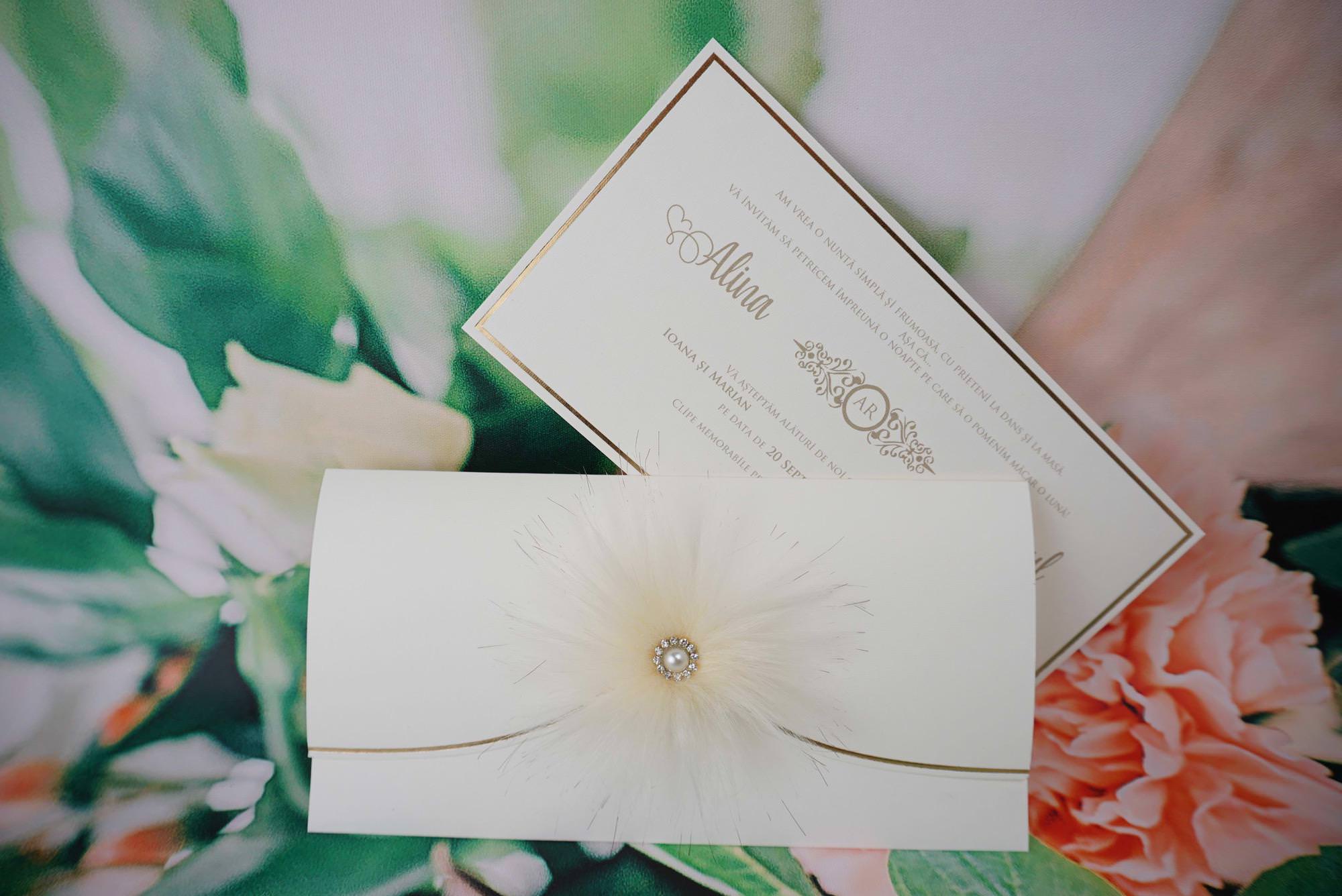 Invitatii de nunta confectionate dintr-un carton mat destinat textului. Acesta se introduce intr-o alta piesa, care prezinta decupaje, in relief. Nu se pliaza. Plicul este inclus în pret. Invitatia se personalizeaza cu textul pe care il doriti, corespunzator evenimentului dvs.